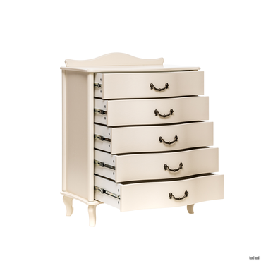 - Идеальный классический комод для изысканной спальни. Пять удобных выдвижных ящика позволяют наиболее функционально использовать пространство и объем комода. Материалы, из которых выполняется комод, обеспечивают высочайшую надежность.
