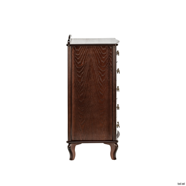 • Идеальный классический комод для изысканной спальни. Пять удобных выдвижных ящика позволяют наиболее функционально использовать пространство и объем комода. Материалы, из которых выполняется комод, обеспечивают высочайшую надежность.