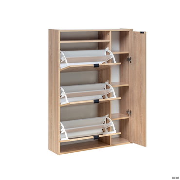 - Много обуви и всегда не знаете куда ее спрятать?! Обувница решит эту проблему. Эта модель оснащена тремя отделениями для хранения обуви. Очень скромные габариты изделия, при этом вместимость обувницы - более 10 пар. Дополнительное место для хранения мелочей и аксессуаров для ухода за обувью.
