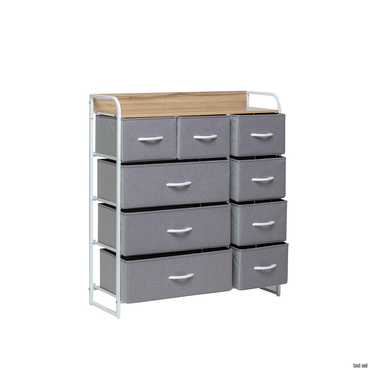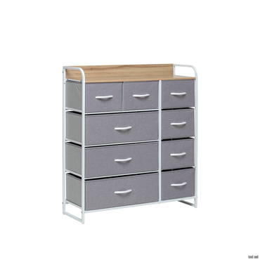 - Комод Leset Ноа с 9 ящиками — это лёгкая и вместительная модель с оригинальным дизайном. Он состоит из стального каркаса и пластиковых ножек, которые защищают пол от царапин. Ящички из дышащего нетканого материала имеют деревянные ручки, что делает их удобными для хранения различных вещей. Водостойкая верхняя панель из МДФ позволит использовать этот предмет мебели как пеленальный столик или для размещения декоративных элементов. Комод можно сочетать с другими мебельными элементами этой линейки. Он не требует сложного ухода — достаточно протереть его влажной тканью. Комод также можно крепить к стене и регулировать по высоте. Сборка занимает всего 20 минут. Чтобы предотвратить опрокидывание комода, особенно в детских комнатах и помещениях с маленькими детьми, рекомендуется прикрутить его к стене с помощью шурупов, входящих в комплект.