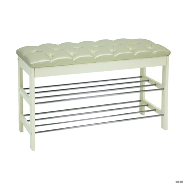 • Широкая двухместная банкетка с мягким сиденьем и полкой для обуви. Она сделана в незамысловатом дизайне и органично впишется в любой интерьер.