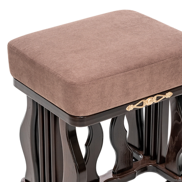 - Банкетка с мягким сидением и изогнутыми опорами необычной формы выполнена из массива дерева. Сиденье обтянуто мебельной тканью высокого качества. Надежные опоры банкетки придают ей устойчивость. Банкетка станет отличным дополнением к туалетному столику «Джульетта».