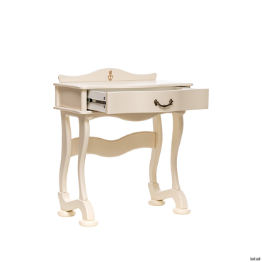 • Изящный стильный туалетный столик. Плавность линий подчеркнут изысканность спальни. Большой выдвижной ящик позволит разместить необходимые предметы и аксессуары. Столик в сочетании с комодом, банкеткой и зеркалом составит отличный гарнитур.