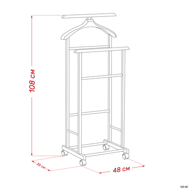 - Изделие изготовлено из массива бука, покрыто высококачественным итальянским шелковисто-матовым лаком. Двойная вешалка предназначена для компактного хранения одежды, занимая минимальное пространство в вашем доме, при этом украшает интерьер. Алюминевые трубки являются элементами крепежа, которые не позволяют стойкам вешалки со временем расшатываться, а так же служат элементом декора. Наличие колес на вешалке, позволяет легко передвигать ее с одного места на другое. В данном изделии сочетаются простота и функциональность, аккуратность и красота.