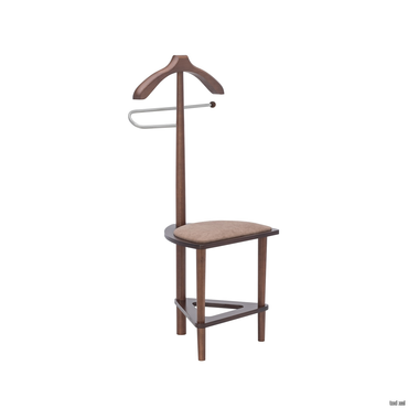 - Плечики изделия и ножки изготовлены из массива бука, основание сиденье – МДФ, мягкий элемент: ткань микровелюр Candy mocco. Изделие покрыто высококачественным итальянским шелковисто-матовым лаком. Данная модель может использоваться не только, как вешалка, но и как стул, который способен выдержать нагрузку до 120кг. Металлическая трубка придает вешалке изящности, прекрасно гармонирует с общим видом изделия. На трубку возможно повесить брюки, юбки, ремни. Подойдет для использования как в стильной комнате, так и в прихожей.