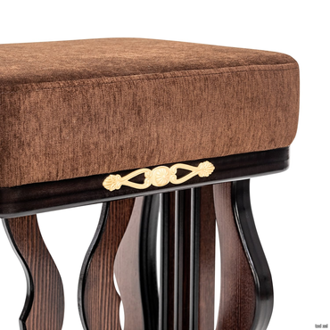 • Банкетка с мягким сидением и изогнутыми опорами необычной формы выполнена из массива дерева. Сиденье обтянуто мебельной тканью высокого качества. Надежные опоры банкетки придают ей устойчивость. Банкетка станет отличным дополнением к туалетному столику «Джульетта».