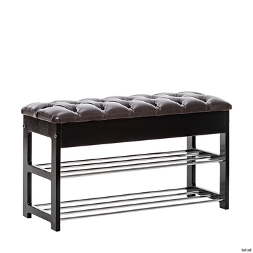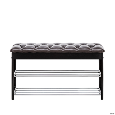 • Широкая двухместная банкетка с мягким сиденьем и полкой для обуви. Она сделана в незамысловатом дизайне и органично впишется в любой интерьер.