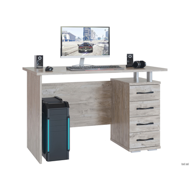 - Удобный большой письменный стол Кери со встроенной вместительной тумбой — это строгие и лаконичные формы, которые будут прекрасно смотреться в современном интерьере. Тумба имеет 4 ящика и нишу сверху. Модель универсальна по функционалу и может быть использована и как письменный, и как компьютерный стол. Характеристики: Материал: ЛДСП 16 и 22 мм, кромка ПВХ 2 и 0,4 мм. Материал ручек: металл. Тип направляющих: роликовые. Ориентация сборки: универсальная. Размеры ящика (ВхШхГ): 81 х 223 х 37 см. Обратите внимание! У стола в цвете «Белый» хромированные ручки-рейлинги, а в цвете «Дуб Юкон» — черные матовые ручки. Задняя стенка тумбы выполнена из ДВП, поэтому модель рекомендуется устанавливать у стены.