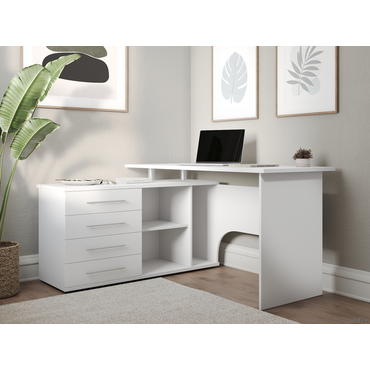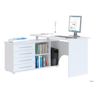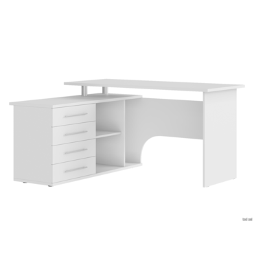 - Угловой компьютерный стол Порту с двумя рабочими поверхностями для организации рабочей зоны дома и в офисе. Основная столешница имеет ширину позволяющую разместить компьютер и рабочие материалы. На малой столешнице удобно держать под рукой книги, папки, канцелярию. Стол оборудован тумбой с четырьмя ящиками на роликовых направляющих, открытыми полками и нишей под системный блок. Такая модель компьютерного стола позволяет организовать функциональную рабочую зону как в домашнем кабинете, так и в офисе. Преимущества: функциональный — две рабочие поверхности, удобно держать все необходимое под рукой; вместительный — оборудован тумбой с 4 ящиками, 2 просторными полками и нишей под системный блок; угловая конструкция — экономит пространство, есть возможность выбора нужной ориентации стола (левый или правый угол); подходит для зонирования — задняя стенка выполнена из ЛДСП в цвете корпуса. Характеристики: Материал корпуса: ЛДСП 16 и 22 мм, кромка ПВХ 0,4 и 2 мм. Материал ручек: металл. Тип направляющих: роликовые. Ориентация сборки: левосторонняя и правосторонняя. Преимущества: Много мест для хранения. Открытые ниши и вместительные ящики позволяют организовать удобную систему хранения в рабочей зоне. Всё необходимое легко разместить под рукой, освободив столешницу от лишних предметов. Широкая столешница. На поверхности достаточно места, чтобы комфортно расположить ноутбук или монитор с клавиатурой, лампу, раскрытую книгу или учебные пособия. Большой выбор цветов. Несколько вариантов оформления позволяют выбрать оптимальную расцветку для любого интерьера. Ниша под системный блок. Специальная ниша позволяет разместить системный блок так, чтобы он был защищен от случайных ударов или пролитой на пол воды. Обратите внимание! У столов в цветах «Белый», «Венге» и «Дуб Сонома / Белый» хромированные ручки-рейлинги, в цветах «Дуб Делано» и «Дуб Юкон» — черные матовые ручки.