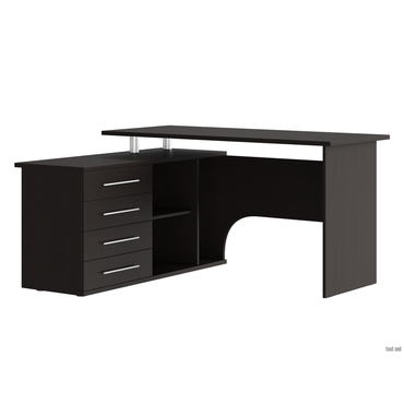 - Угловой компьютерный стол Порту с двумя рабочими поверхностями для организации рабочей зоны дома и в офисе. Основная столешница имеет ширину позволяющую разместить компьютер и рабочие материалы. На малой столешнице удобно держать под рукой книги, папки, канцелярию. Стол оборудован тумбой с четырьмя ящиками на роликовых направляющих, открытыми полками и нишей под системный блок. Такая модель компьютерного стола позволяет организовать функциональную рабочую зону как в домашнем кабинете, так и в офисе. Преимущества: функциональный — две рабочие поверхности, удобно держать все необходимое под рукой; вместительный — оборудован тумбой с 4 ящиками, 2 просторными полками и нишей под системный блок; угловая конструкция — экономит пространство, есть возможность выбора нужной ориентации стола (левый или правый угол); подходит для зонирования — задняя стенка выполнена из ЛДСП в цвете корпуса. Характеристики: Материал корпуса: ЛДСП 16 и 22 мм, кромка ПВХ 0,4 и 2 мм. Материал ручек: металл. Тип направляющих: роликовые. Ориентация сборки: левосторонняя и правосторонняя. Преимущества: Много мест для хранения. Открытые ниши и вместительные ящики позволяют организовать удобную систему хранения в рабочей зоне. Всё необходимое легко разместить под рукой, освободив столешницу от лишних предметов. Широкая столешница. На поверхности достаточно места, чтобы комфортно расположить ноутбук или монитор с клавиатурой, лампу, раскрытую книгу или учебные пособия. Большой выбор цветов. Несколько вариантов оформления позволяют выбрать оптимальную расцветку для любого интерьера. Ниша под системный блок. Специальная ниша позволяет разместить системный блок так, чтобы он был защищен от случайных ударов или пролитой на пол воды. Обратите внимание! У столов в цветах «Белый», «Венге» и «Дуб Сонома / Белый» хромированные ручки-рейлинги, в цветах «Дуб Делано» и «Дуб Юкон» — черные матовые ручки.