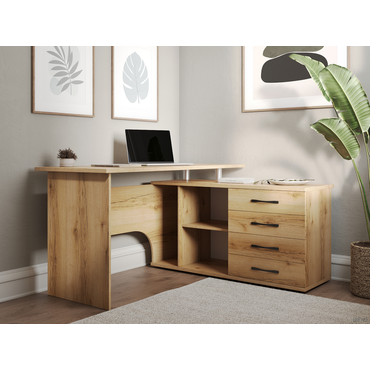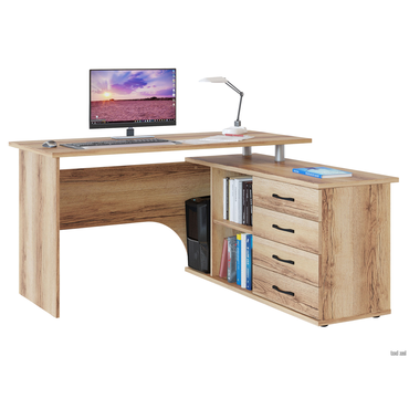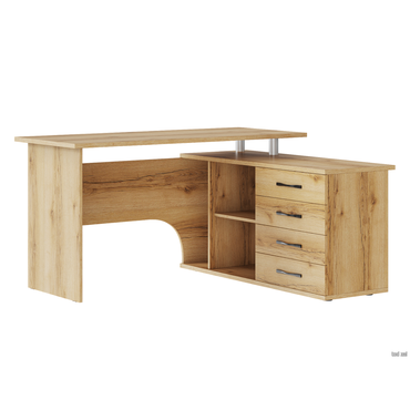 - Угловой компьютерный стол Порту с двумя рабочими поверхностями для организации рабочей зоны дома и в офисе. Основная столешница имеет ширину позволяющую разместить компьютер и рабочие материалы. На малой столешнице удобно держать под рукой книги, папки, канцелярию. Стол оборудован тумбой с четырьмя ящиками на роликовых направляющих, открытыми полками и нишей под системный блок. Такая модель компьютерного стола позволяет организовать функциональную рабочую зону как в домашнем кабинете, так и в офисе. Преимущества: функциональный — две рабочие поверхности, удобно держать все необходимое под рукой; вместительный — оборудован тумбой с 4 ящиками, 2 просторными полками и нишей под системный блок; угловая конструкция — экономит пространство, есть возможность выбора нужной ориентации стола (левый или правый угол); подходит для зонирования — задняя стенка выполнена из ЛДСП в цвете корпуса. Характеристики: Материал корпуса: ЛДСП 16 и 22 мм, кромка ПВХ 0,4 и 2 мм. Материал ручек: металл. Тип направляющих: роликовые. Ориентация сборки: левосторонняя и правосторонняя. Преимущества: Много мест для хранения. Открытые ниши и вместительные ящики позволяют организовать удобную систему хранения в рабочей зоне. Всё необходимое легко разместить под рукой, освободив столешницу от лишних предметов. Широкая столешница. На поверхности достаточно места, чтобы комфортно расположить ноутбук или монитор с клавиатурой, лампу, раскрытую книгу или учебные пособия. Большой выбор цветов. Несколько вариантов оформления позволяют выбрать оптимальную расцветку для любого интерьера. Ниша под системный блок. Специальная ниша позволяет разместить системный блок так, чтобы он был защищен от случайных ударов или пролитой на пол воды. Обратите внимание! У столов в цветах «Белый», «Венге» и «Дуб Сонома / Белый» хромированные ручки-рейлинги, в цветах «Дуб Делано» и «Дуб Юкон» — черные матовые ручки.