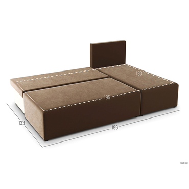- Стильный угловой диван Комо — прекрасный вариант для гостиной или спальни. Модель будет отлично смотреться в любом современном интерьере. Отсутствие подлокотников и декоративных излишеств станет преимуществом в небольшом пространстве. Характеристики: Механизм трансформации: еврокнижка. Размер спального места: 133х195 см. Размер спального места в сложенном виде: 70х195 см. Посадочное место (ВхГ): 35 х 56 см. Размер приспинных подушек: 43 х 60 см (3 шт). Материал каркаса: дерево. Наполнение: пенополиуретан. Набивка подушек: поролоновая крошка. Материал ножек: пластик. Нагрузка на одно спальное место: 100 кг. Нагрузка на одно посадочное место: 80 кг. Глубина сиденья без подушек: 70 см. Высота спинки от посадочного места: 41 см. Ориентация сборки: универсальная. Преимущества: механизм еврокнижка — надежный и простой в использовании механизм. Спальное место без стыков, которое располагается вдоль. Чтобы трансформировать диван, нужно выдвинуть сиденье вперед и опустить спинку на освободившееся место. Подходит для ежедневной эксплуатации; ткань со всех сторон — диван со всех сторон обит одним материалом, поэтому будет эстетично смотреться даже в центре комнаты. Идеален для зонирования пространства и больших помещений; ящик для хранения — в просторном коробе уместится все: от постельного белья и объемных подушек до сезонных вещей и коробок с обувью; универсальный угол — угловая часть дивана располагается справа и слева, позволяя легко обновить интерьер и адаптировать его к новому пространству.