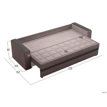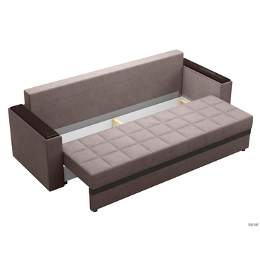 - Стильный прямой диван Атланта подходит для оформления интерьера любой комнаты, а декоративные стяжки на подушках делают эту модель особенно привлекательной. Надежный и удобный механизм трансформации быстро превращает диван в полноценное спальное место. Модель дополнена двумя деревянными подлокотниками и вместительным ящиком для постельных принадлежностей. Характеристики: Размер спального места: 148х197 см. Механизм трансформации: еврокнижка. Нагрузка на одно спальное место: 120 кг. Нагрузка на одно посадочное место: 90 кг. Посадочное место (ВхГ): 43 х 60 см. Посадочное место без подушек (ШхГ): 197 х 75 см. Размер подлокотников (ВхШхГ): 60 х 104 х 14 см. Приспиннаяя подушка (ВхШхГ): 43 х 66 х 20 см (3 шт.). Материал каркаса: массив сосны, ДСП. Наполнение: плоские пружины «змейка», пенополиуретан. Набивка подушек: пенополиуретан. Высота опор: 3 см. Материал ножек: пластик. Преимущества: механизм трансформации «Еврокнижка» — надежный и простой в использовании механизм. Спальное место без стыков, которое располагается вдоль. Чтобы трансформировать диван, нужно выдвинуть сиденье вперед и опустить спинку на освободившееся место. Подходит для ежедневной эксплуатации; ящик для хранения — в просторном коробе уместится все: от постельного белья и объемных подушек до сезонных вещей и коробок с обувью; ткань со всех сторон — диван со всех сторон обит одним материалом, поэтому будет эстетично смотреться даже в центре комнаты. Идеален для зонирования пространства и больших помещений; комфортный сон и защита стены — защищает спящего от соприкосновений с холодной стеной, а настенное покрытие — от потертостей и пятен. Обратите внимание, изделие поставляется в разобранном виде: необходима установка подлокотников.