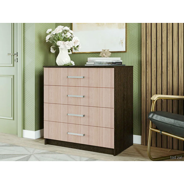 - Комод Фиеста 4 ящика поможет систематизировать хранение, аккуратно распределив нужные вещи внутри выдвижных ящиков. Такая мебель станет удачным приобретением для любой комнаты. Контрастные ручки, которыми дополнены гладкие фасады, выполняют не только основную, но и декоративную функцию. На поверхности можно расположить светильник, рамки с фотографиями или живые растения. Характеристики: Материал: ЛДСП. Материал ручек: пластик. Тип направляющих: роликовые. Внутренние габариты ящика (ВхШхГ): 14 х 76 х 43,5 см. Максимальная нагрузка на ящик: 5 кг. Максимальная нагрузка на столешницу: 10 кг. Обратите внимание! Боковины ящиков закромлены только с одной стороны, сборку необходимо осуществлять строго по инструкции.