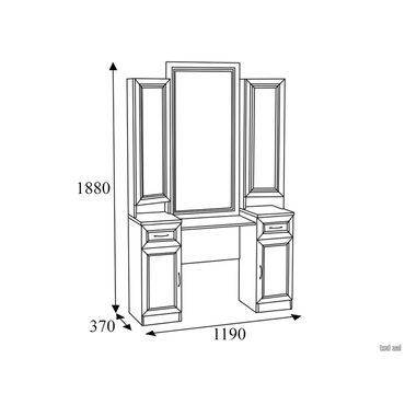 - Невероятно функциональный и вместительный трельяж Мерлен станет незаменимым помощником в сборах на работу или свидание, в театр или в ресторан. Преимущества: всё под рукой — для каждой вещицы найдется свое место; большое зеркало — видно весь образ, пространство вокруг светлее. Характеристики: Материал каркаса: ЛДСП 16 мм. Материал фасада: ЛДСП, вставка МДФ, зеркало. Тип направляющих: шариковые / роликовые. Ориентация сборки: только так, как показано на изображении. Размер среднего зеркала: 106,3 х 46,3 см. Размер боковых зеркал: 78,3 х 18 см.