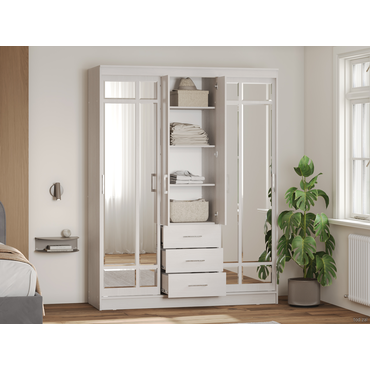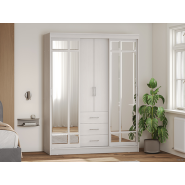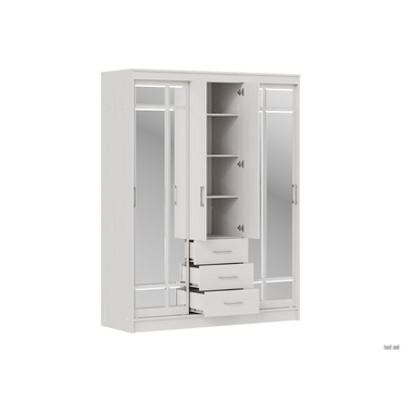 - Большой и вместительный шкаф-купе Маэстро заменит собой небольшую гардеробную. Благодаря наличию полок, ниш, ящиков и двух секций со штангами для вешалок он невероятно удобный и функциональный. Высокий шкаф заметно экономит пространство в комнате. А большие зеркала визуально делают помещение просторнее и светлее. Функциональное наполнение: два отделения со штангами для вешалок, полки и три выдвижных ящика, высокие зеркала. Декоративный: фацетная обработка кромки зеркал, двухцветные ручки, контрастное сочетание фасадов и корпуса. Вместительный: длинная стационарная штанга для вешалок. Безопасный: зеркала с фацетной кромкой. Функциональный: два платяных шкафа, полки, ящики, высокие зеркала. Направляющие: СТ, сверху алюминий, снизу пластик. Внимание! Данный шкаф требует много места для сборки. Конструкция шкафа предполагает его сборку в горизонтальном положении (лежа). Для того, чтобы шкаф можно было поднять из положения «лежа», высота потолков должна быть больше высоты шкафа не менее, чем на 10 см. Сборка шкафа в вертикальном положении (стоя) гораздо более трудоемкая и часто приводит к повреждению деталей. Боковины ящиков закромлены только с одной стороны, сборку необходимо осуществлять строго по инструкции.