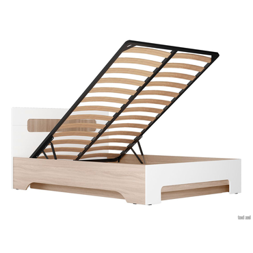 Двуспальная кровать МК СТИЛЬ Палермо С Ясень Шимо светлый / Белый глянец С основанием и подъемным механизмом 140х200 см ,