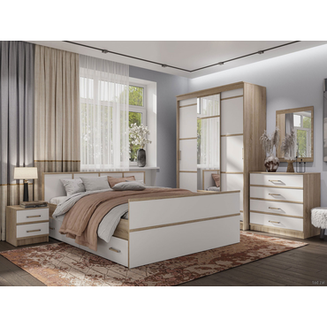 Двуспальная кровать BTS Сакура Дуб Сонома / Белый С реечным основанием 140х200 см ,
