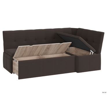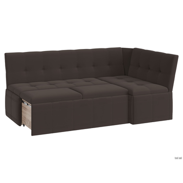 - Угловая скамья Квадро — просторная и элегантная модель, которая поможет оборудовать пространство для отдыха в гостиной, на кухне, на даче. Выдвижной ящик быстро трансформирует диван в комфортное место для сна. Во внутреннем коробе удобно хранить белье, посуду и другие необходимые вещи. Характеристики: Материал каркаса: ЛДСП. Материал обивки: экокожа / ткань. Наполнение мягких элементов: поролон. Размер большого сиденья: 124 х 50 см. Размер малого сиденья: 99 х 50 см. Высота сиденья от пола: 45,5 см. Механизм трансформации: выкатной. Ящик для хранения: есть. Ориентация сборки: универсальная. Размер спального места (ШхГ): 87,5 х 175 см. Максимальная нагрузка: 90 кг. В зависимости от партии, цвет каркаса может отличаться от представленного на изображении. Чтобы разложить диван необходимо выдвинуть ящик вперед, в образовавшуюся нишу укладываются дополнительные мягкие элементы, которые хранятся под боковым сиденьем. В результате получается ровная поверхность спального места.