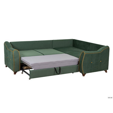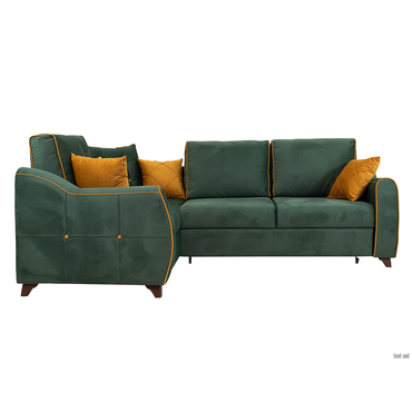 - Уютный трехместный угловой диван Френсис станет центральной частью гостиной или квартиры-студии. Декоративный кант, пуговицы и утяжки на подушках и подлокотниках — оригинальные детали, которые делают диван по-настоящему стильным. Спинка выполнена из основной ткани, что позволяет использовать модель для зонирования пространства. Диван легко трансформируется в просторную кровать с ящиком для белья в оттоманке. Удобные подлокотники и подушки являются необходимой составляющей эргономики: позволяют регулировать глубину посадки, создают опору для рук и спины. Характеристики: Материал: брус, фанера, ЛДСП. Наполнитель: плоские пружины «змейка». Наполнитель подушек: полиэфирное волокно. Материал опор: пластик. Нагрузка на одно спальное место: 100 кг. Нагрузка на одно посадочное место: 80 кг. Посадочное место (ВхГ): 48 х 58 см. Декоративные подушки (ВхШ): 44 х 44 см (4 шт.) Преимущества: механизм трансформации «Дельфин» — прочный и устойчивый к нагрузкам механизм. Наиболее часто применяется в угловых диванах. Для трансформации нужно вытянуть из-под широкой части дополнительную секцию с подъемным механизмом и приподнять, чтобы она сравнялась с уровнем сиденья. Подходит для ежедневного использования; ткань со всех сторон — защищает спящего от соприкосновений с холодной стеной, а настенное покрытие — от потертостей и пятен; комфортный сон и защита стены — защищает спящего от соприкосновений с холодной стеной, а настенное покрытие — от потертостей и пятен; ящик в оттоманке — в коробе можно с удобством хранить постельное белье и подушки или другие нужные вещи; удлиненный подлокотник — имитирует мягкое изголовье кровати. Не дает подушкам соскальзывать на пол и делает сон максимально комфортным. Задняя спинка защищает от соприкосновений с холодной стеной, а настенное покрытие — от потертостей и пятен; подушки под спину — дополнительные подушки позволяют комфортно расположиться на диване, регулируя глубину посадки; универсальный угол — угловая часть дивана располагается справа и слева, позволяя легко обновить интерьер и адаптировать его к новому пространству.