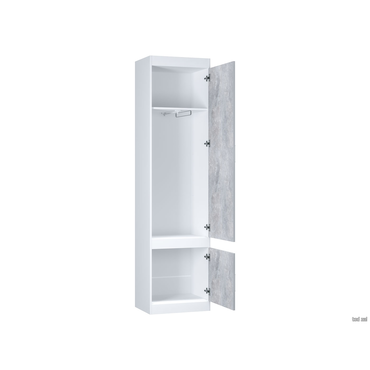 - Детский шкаф-пенал Паскаль идеально подходит для комнаты с ограниченным пространством. Внутри находится выдвижная поперечная штанга, которая помогает быстрее находить нужную вещь. Полки обеспечат место для коробок с обувью, головных уборов и других сезонных вещей. Матовые фасады имитируют текстуру бетона, что позволяет интегрировать модель в современный интерьер. Характеристики: Материал: ЛДСП 16 мм. Материал ручек: пластик. Тип штанги: евроштанга. Дверцы можно навесить на любую сторону.