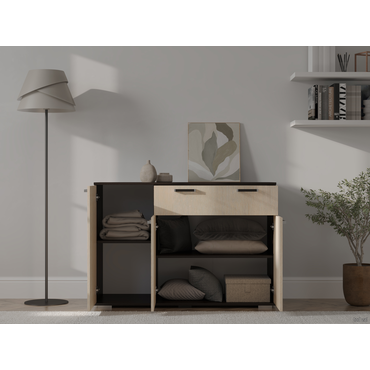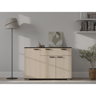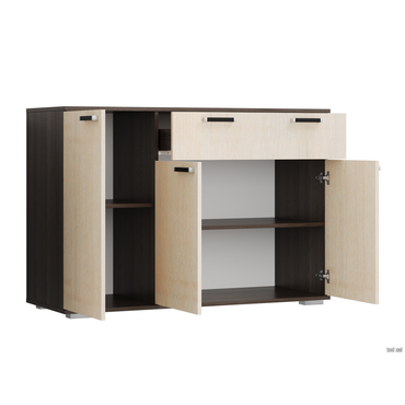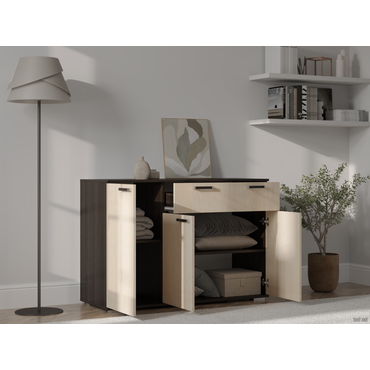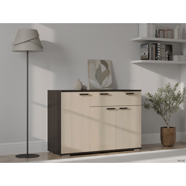 - Комод Стандарт 4 расширит систему хранения и украсит современный интерьер. Закрытая система хранения представлена двумя отделениями с полками за распашными дверцами и выдвижным ящиком. Такое наполнение позволяет удобно разместить любые вещи и предметы обихода. Древесные оттенки придают модели привлекательный вид. Характеристики: Материал: ЛДСП 16 мм. Материал ручек: пластик. Тип направляющих: роликовые 40 см. Внутренние габариты ящика (ВхШхГ): 9,8 х 71,8 х 38,4 см. Ориентация сборки: только так, как показано на изображении. Максимальная нагрузка на ящик: 5 кг. Максимальная нагрузка на столешницу: 10 кг. Обратите внимание, комод требуется крепить к стене, фурнитура не входит в комплект.