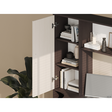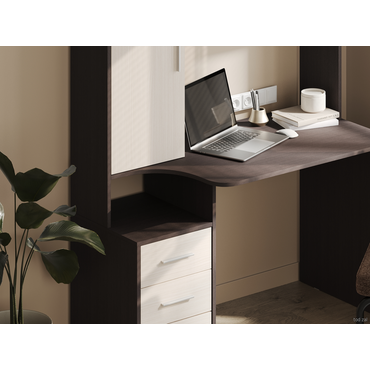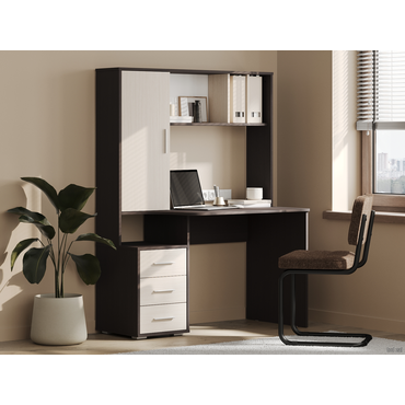 - Компьютерный стол Дуглас незаменим для обустройства домашнего кабинета. Он сочетает в себе лаконичный дизайн и функциональность, идущую в ногу со временем. В конструкции стола предусмотрена высокая надстройка с открытыми полками и закрытым стеллажом с двумя просторными полками, благодаря которым все нужные бумаги, книги и канцелярские принадлежности всегда будут под рукой. Под столешницей расположена тумба с открытой нишей и тремя выдвижными ящиками на шариковых направляющих. Преимущества: множество мест для хранения — чтобы все было под рукой; функциональный — оснащен тумбой с тремя ящиками и надстройкой с полками и стеллажом; металлические ручки — стильные и долговечные; шариковые направляющие полного выдвижения — плавное выдвижение ящиков, долговечность конструкции. Характеристики: Материал корпуса: ЛДСП 16 мм. Материал ручек: металл. Тип направляющих: шариковые. Ориентация сборки: только так, как представлено на изображении. Обратите внимание, задняя стенка сделана из ДВП белого цвета, поэтому стол рекомендуется ставить к стене.