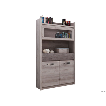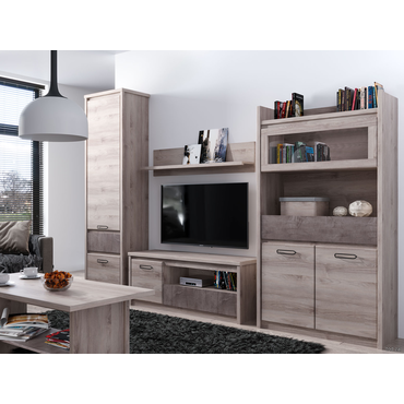 - Стильный шкаф-витрина Джаз станет незаменимым помощником для организации системы хранения в гостиной. Модель располагает множеством удобных секций, в которых можно разместить все необходимые предметы. Преимущества: функциональное наполнение — благодаря нескольким полкам, закрытым нишам и выдвижному ящику, модель позволит с легкостью разместить множество нужных вещей; модульная серия — можно оформить интерьер гостиной в едином стиле; стильный дизайн — отделка фасада ящика «под камень» интересно сочетается со светлым деревом, за счет этого модель отлично подойдёт под современный интерьер или интерьер в стиле лофт. Характеристики: Материалы корпуса: ЛДСП, кромка ПВХ. Материалы фасада: ЛДСП, меламиновая бумага, каленое стекло, кромка ПВХ. Задняя стенка выполнена из ДВП. Ручки выполнены из металла. Тип направляющих: шариковые. Петли оснащены доводчиками. Дверца оснащена газлифтами. Глубина ящика: 32 см. Глубина верхней полки: 38,7 см. Глубина средних полок и ниши за дверцами: 37,1 см. Максимальная нагрузка на ящик и полку: 5 кг.