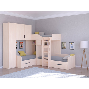 Двухъярусная кровать РВ Мебель TRIO-1 Дуб Молочный Дуб Молочный ,