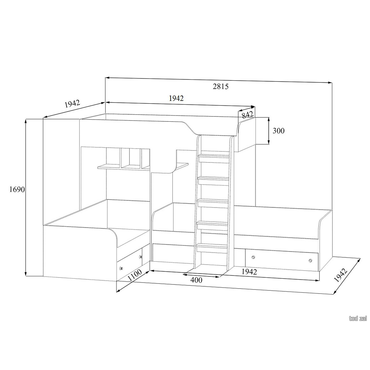 - Детская кровать Трио отлично подойдет для большой детской комнаты. Модель оснащена полочками, на которых можно разместить книги, ночные светильники и другие аксессуары. Два вместительных ящика можно использовать для хранения игрушек и постельных принадлежностей. Характеристики: Материал каркаса: ЛДСП 16 мм. Высота верхнего спального места от пола: 139 см. Рекомендуемая высота матраса: до 17 см. Высота бортика: 30 см. Максимальная нагрузка на спальное место: 100 кг. Ориентация сборки: универсальная. Выкатные ящики на колесных опорах. Обратите внимание, матрасы в комплект не входят, их необходимо приобрести отдельно.