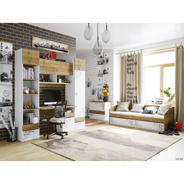 - Детский письменный стол Оксфорд поможет организовать рабочее место школьника. Широкая поверхность позволит с комфортом расположиться во время выполнения учебных и творческих заданий. Для тетрадей, учебников и канцелярии предусмотрены удобные ниши для хранения. Принт на фасадах — изюминка дизайна и стильный акцент в интерьере комнаты ребенка. Характеристики: Материал корпусов: ЛДСП, ABS-кромка. Материал фасадов: ЛДСП, ABS-кромка, УФ-печать. Материал ручек: металл. Габариты надстройки (ВхШхГ): 138,6 х 116 х 35 см. Высота ниши под монитор: 65 см. Тип направляющих: шариковые. Дверца надстройки оснащена газлифтами. Дверца и ящик стола открываются за отверстие на фасаде. Ориентация сборки: универсальная. Максимальная нагрузка на столешницу: 30 кг. Максимальная нагрузка на ящик: 5 кг. Максимальная нагрузка на полку: 3 кг.