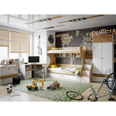 Двухъярусная кровать ТриЯ Оксфорд Дуб Ривьера с рисунком / Белый с рисунком Дуб Ривьера с рисунком / Белый с рисунком ,