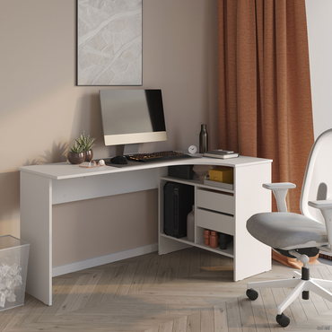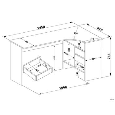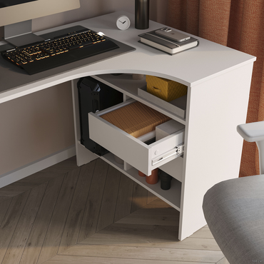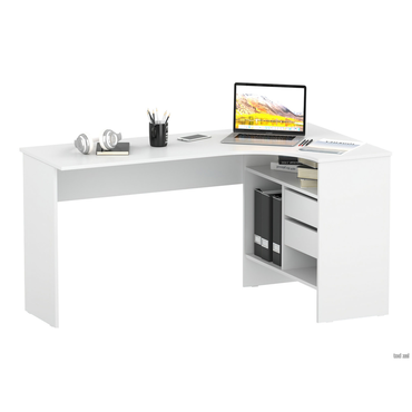 - Угловой письменный стол Шепард — идеальное решение для обустройства полноценного рабочего места в домашнем кабинете или офисе. На широкой столешнице найдется место для большого монитора, клавиатуры или ноутбука, а также сопутствующей техники. В выдвижных ящиках и открытых отделениях удобно хранить книги и канцелярию. Преимущества: Много мест для хранения. Открытые ниши и выдвижные ящики позволяют организовать удобную систему хранения в рабочей зоне. Всё необходимое легко разместить под рукой, освободив столешницу от лишних предметов. Широкая столешница. На поверхности достаточно места, чтобы комфортно расположить ноутбук или монитор с клавиатурой, лампу, раскрытую книгу или учебные пособия. Шариковые направляющие. Позволяют выдвинуть ящик на всю глубину, облегчая поиск нужной вещи. Плавное скольжение обеспечивает комфортную эксплуатацию механизма и продлевает срок службы мебели. Универсальный дизайн. Силуэт стола простой и лаконичный. Такой дизайн легко сочетается с другой современной мебелью и не перегружает интерьер лишними деталями. Характеристики: Материал: ЛДСП 16 мм, кромка ПВХ 0,4 и 2 мм. Тип направляющих: шариковые. Ориентация сборки: левосторонняя и правосторонняя. Максимальная нагрузка на столешницу: 20 кг. Максимальная нагрузка на полки и ящики: 5 кг. Обратите внимание, задняя стенка сделана из ДВП белого цвета, поэтому стол рекомендуется ставить к стене.