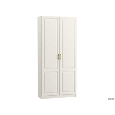 Распашной шкаф Ливерпуль — компактный, но вместительный модуль, в котором легко найдется место для повседневной одежды и сезонных вещей. Внутреннее пространство оснащено поперечной штангой для вешалок и несколькими полками. Светлые фасады гармонично сочетаются с изящными ручками оттенка античной бронзы.