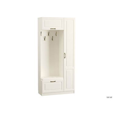 Прихожая Ливерпуль выполнена в стиле современной классики и поможет создать функциональную и эстетичную обстановку в квартире или загородном доме. Для верхней одежды предусмотрены расположенные на разных уровнях удобные крючки, а для обуви есть специальная тумба с откидной дверцей. Система хранения дополнена закрытыми полками, где найдется место для аксессуаров, головных уборов и других вещей.