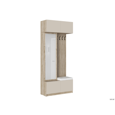 Прихожая Бостон — компактный и практичный вариант размещения верхней одежды и обуви в небольшой комнате. Модель включает несколько отделений за распашными фасадами, удобные крючки, большое зеркало и мягкое сиденье.