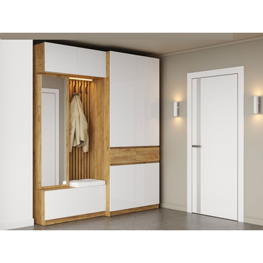 Прихожая Бостон включает всё самое необходимое для хранения одежды, обуви и различных мелочей. Множество закрытых отделений позволит спрятать вещи от посторонних глаз и не захламлять интерьер. Большое зеркало — важный элемент любой входной зоны.