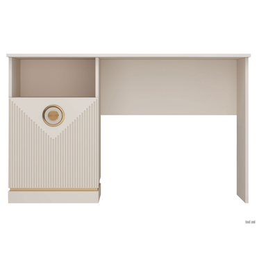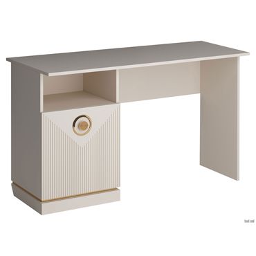 - Туалетный столик Капри — элегантное решение, с помощью которого можно красиво оформить место для нанесения макияжа и ухода за собой. В дизайне используются нежный сатиновый оттенок, изящный золотой декор и стильная фрезеровка фасада. Модель прекрасно дополнит самый утонченный интерьер и позволит удобно разместить косметику, парфюм и аксессуары. Характеристики: Материал корпуса: ЛДСП. Материал фасада: МДФ в пленке ПВХ. Материал ручки: металл. Дверца оснащена доводчиками. Ориентация сборки: только так, как показано на изображении.