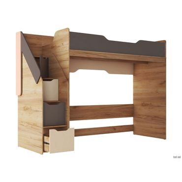 Кровать-чердак МК СТИЛЬ Лео Дуб Крафт золотой / Миндаль / Глиняный серый Дуб Крафт золотой / Миндаль / Глиняный серый ,