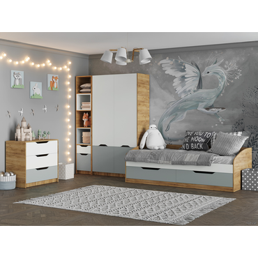 - Детский стеллаж Рич — идеальное сочетание продуманного наполнения и стильного дизайна. В оформлении используется сразу несколько оттенков, что делает модель ярким акцентом интерьера. На верхних полках можно хранить книги, игрушки и красивый декор, а в ящике и за дверцей спрятать разные мелочи. Характеристики: Материал: ЛДСП 16 мм с кромкой ПВХ. Тип направляющих: шариковые. Дверцу можно навесить на любую сторону. Габариты ящика (ВхШхГ): 10,6 х 31,2 х 40 см. Обратите внимание, стеллаж необходимо крепить к стене, чтобы исключить риск опрокидывания.