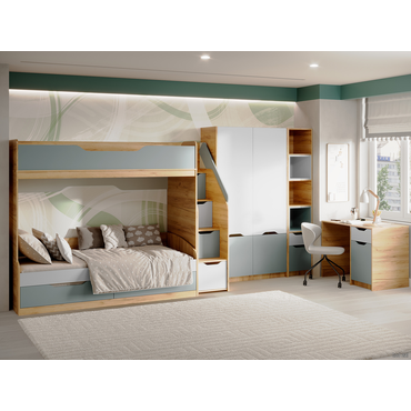 Стеллаж в детскую МК СТИЛЬ Лео Дуб Крафт золотой / Сумеречный голубой / Пастельный зеленый Дуб Крафт золотой / Сумеречный голубой / Пастельный зеленый ,
