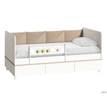 - Комплект детской мебели Эйп поможет функционально обустроить комнату в скандинавском стиле. Кровать оснащена съемным мягким элементом для хранения любимых игрушек и книг в быстром доступе, а также съемным бортиком, который защитит ребенка от падения во время беспокойного сна. Секция с открытыми нишами, напоминающая своим дизайном игрушечный домик, позволит украсить комнату аксессуарами. Регулируемые опоры дадут возможность разместить мебель даже на неровном полу. В комплект входят (ВхШхГ): Кровать: 75 х 164,2 х 89,7 см. Шкаф: 183,8 х 85 х 51,1 см. Стеллаж: 183,8 х 53 х 41,5 см. Комод: 75 х 85 х 41,5 см. Характеристики: Размер спального места (ШхГ): 80 х 160 см. Материал: ЛДСП 16 мм с кромкой ПВХ 0,4 мм. Материал кармашков: велюр. Материал ручек: пластик. Основание: настил. Тип направляющих: шариковые. Тип штанги: продольная. Максимальная нагрузка на кровать: 80 кг. Высота спального места от пола: 26 см. Рекомендуемая высота матраса: 12 см. Максимальная нагрузка на штангу: 1,5 кг. Максимальная нагрузка на ящик: 3 кг. Максимальная нагрузка на полку: 5 кг. Максимальная нагрузка на столешницу: 10 кг. Регулируемые опоры. Высота опор: 6 см. Рисунки выполнены методом фотопечати. Обратите внимание, матрас в комплект не входит.