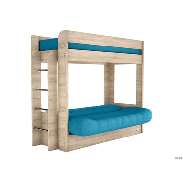 - Двухъярусный диван-кровать Твинс — удачное решение для небольшой детской комнаты. На модели можно комфортно отдыхать в дневное время, и она легко раскладывается для сна. Компактная лестница позволяет без труда подняться на второй ярус, а специальный бортик делает спальное место наверху максимально безопасным. Характеристики: Размер спального места дивана: 106 х 186 см. Механизм трансформации дивана: книжка. Материал каркаса: ЛДСП 16 мм. Размер матраса верхнего яруса (ВхШхГ): 18 х 80 х 190 см. Нагрузка на спальное место нижнего яруса: 100 кг. Нагрузка на спальное место верхнего яруса: 90 кг. Нагрузка на одно посадочное место: 90 кг. Нагрузка на модель: 200 кг. Матрас верхнего яруса: односторонней мягкости на пружинном блоке Боннель. Наполнитель дивана: пенополиуретан. Установка лестницы: универсальная. Высота от пола до верхней части матраса: 163 см. Посадочное место дивана (ВхШхГ): 45 х 186 х 79 см. Преимущества: механизм «книжка»: чтобы разложить диван, нужно приподнять сиденье до характерного щелчка (при этом спинка принимает горизонтальное положение) и опустить обратно. Для трансформации необходимо небольшое пространство между спинкой и стеной. Подходит для ежедневной эксплуатации.