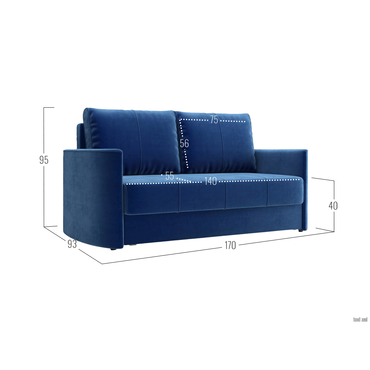 Прямой диван todzal Амьен мини Синий, велюр Синий, велюр ,
