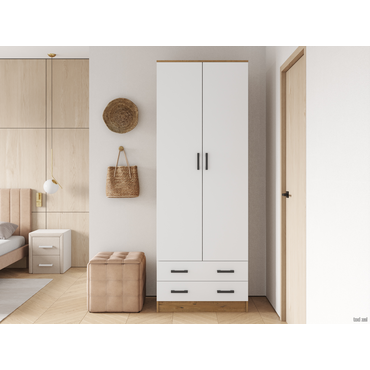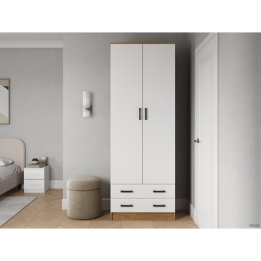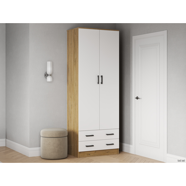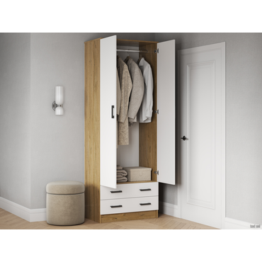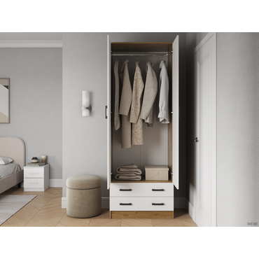 Распашной шкаф Эра Прагма Дуб Вотан / Белый гладкий Со штангой ,