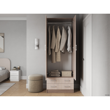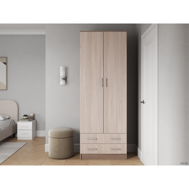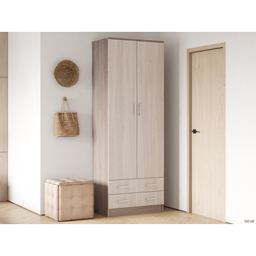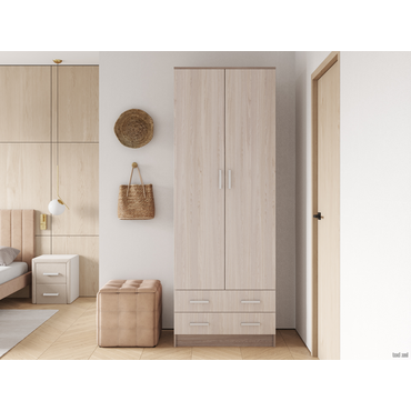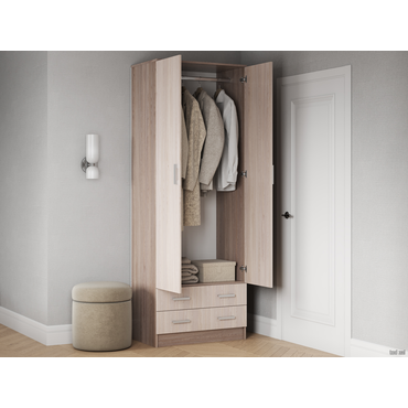 - Распашной шкаф Эко Дуэт станет компактным решением для аккуратного хранения гардероба. Отделение со штангой поможет хранить одежду на вешалках, а ряд полок идеально подходит для домашнего текстиля, коробок с обувью и аксессуаров. В нижней части расположены два выдвижных ящика для различных мелочей. Матовые фасады непритязательны в уходе. Контрастные ручки служат небольшими акцентами пространства. Характеристики: Материал: ЛДСП. Материал ручек: пластик. Тип направляющих: роликовые. Тип штанги: продольная. Ориентация сборки: универсальная.
