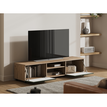 - ТВ-тумба Милан позволит разместить телевизор любой диагонали, а две открытые ниши под столешницей подойдут для сопутствующей видеотехники. Система хранения представлена двумя вместительными отделениями за откидными дверцами для постельного белья, сложенной одежды и личных вещей. Фасады выполнены из качественного экологичного материала и украшены вертикальной фрезеровкой. Характеристики: Материал корпуса: ЛДСП. Материал фасадов: МДФ. Материал ручек: пластик. Механизм открывания: откидной с доводчиками. Максимальная нагрузка на столешницу: 30 кг. Тумбу можно подвесить, фурнитура входит в комплект. Высота ножек: 4,4 см.