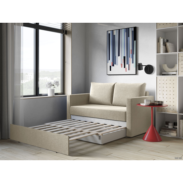 - Прямой диван Альфа идеален для небольшого помещения, в котором необходимо дополнительное спальное место. Минималистичный дизайн позволяет гармонично разместить модель в любом современном интерьере. Благодаря объемным подушкам и удобным подлокотникам на нём очень комфортно отдыхать. Простой механизм быстро превращает диван в ровное место для сна, а бельевой короб расширяет возможности для хранения. Характеристики: Размер спального места: 126 х 198 см. Механизм трансформации: выкатной. Нагрузка на одно спальное место: 110 кг. Нагрузка на одно посадочное место: 110 кг. Посадочное место (ВхШхГ): 46 х 126 х 51 см. Посадочное место без подушек (ШхГ): 126 х 67 см. Размер приспинных подушек (ВхШхГ): 66 х 44 х 18 см (2 шт.. Размер ящика для белья (ВхШхГ): 13,5 х 116 х 65,5 см. Размер подлокотников (ВхШхГ): 70 х 82 х 11 см. Высота дивана без подушек: 78 см. Ширина спинки: 126 см. Высота спального места в разложенном виде: 29 см. Материал основания: деревянные ламели. Наполнитель: пенополиуретан. Наполнитель подушек: чипсы пенополиуретана. Тип каркаса: массив хвои. Материал ножек: пластик. Высота ножек: 5 см. Преимущества: выкатной механизм — в разложенном виде предоставляет ровное спальное место без стыков. В сложенном состоянии не займет много места. Трансформация осуществляется очень легко: нужно полностью выкатить вперед нижнюю часть, на которой находится сложенная вдвое подушка, и откинуть ее на свободное пространство. Подходит для ежедневного использования; ящик для хранения двойной — в коробе с перегородкой удобно хранить постельные принадлежности, сезонные вещи и другие предметы отдельно друг от друга; комфортный сон и защита стены — защищает спящего от соприкосновений с холодной стеной, а настенное покрытие — от потертостей и пятен.