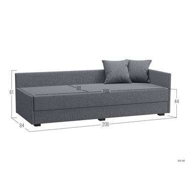 - Прямой диван Нордик объединяет минималистичный внешний вид, практичность и функциональность. Сиденье с низкой спинкой и узким подлокотником дополнено двумя декоративными подушками, благодаря которым модель становится удобнее. Такой диван отлично подойдет для небольшой комнаты или студии. Ящик для хранения позволяет держать под рукой постельное белье или запасное одеяло. Характеристики: Размер спального места: 80 х 198 см. Нагрузка на одно спальное место: 110 кг. Нагрузка на одно посадочное место: 110 кг. Посадочное место (ВхШхГ): 44 х 198 х 80 см. Декоративные подушки (ВхШхГ): 44 х 44 х 10 см (2 шт.). Размер ящика для белья (ВхШхГ): 17,5 х 197 х 74 см. Размер подлокотников (ВхШхГ): 62 х 4,5 х 78 см. Наполнитель: пенополиуретан, синтепон. Наполнитель подушек: чипсы пенополиуретана. Тип каркаса: массив хвои. Сборка: универсальная. Материал ножек: пластик. Высота ножек: 4,5 см. Преимущества: ящик для хранения двойной — в коробе с перегородкой удобно хранить постельные принадлежности, сезонные вещи и другие предметы отдельно друг от друга; спальное место без раскладывания — глубина модели позволяет организовать полноценное спальное место для одного человека, не раскладывая диван; комфортный сон и защита стены — защищает спящего от соприкосновений с холодной стеной, а настенное покрытие — от потертостей и пятен; подушки под спину — дополнительные подушки позволяют комфортно расположиться на диване, регулируя глубину посадки; универсальная сборка — расположение подлокотника определяется во время сборки. Это позволяет легко обновить интерьер и адаптировать диван к новому пространству.