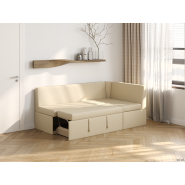 - Угловой кухонный диван Нарва — компактная модель с минималистичным дизайном и удобным механизмом трансформации. Диван можно установить в небольшой комнате или студии, обеспечив место не только для отдыха, но и сна. Под сиденьем находится вместительный ящик для хранения. Характеристики: Размер спального места: 100 х 172 см. Механизм трансформации: дельфин. Нагрузка на одно спальное место: 110 кг. Нагрузка на одно посадочное место: 110 кг. Посадочное место (ВхШхГ): 46 х 175 х 50 см. Размер ящика для белья (ВхШхГ): 31 х 95 х 69 см. Ширина сиденья до оттоманки: 125 см. Размер оттоманки: 50 х 100 см. Ширина спинки: 175 см. Размер подлокотников (ВхШхГ): 80 х 15 х 100 см. Материал основания: Фанера. Наполнитель: пенополиуретан, синтепон. Тип каркаса: массив хвои. Сборка: универсальная. Материал ножек: пластик. Высота ножек: 2 см. Преимущества: механизм дельфин — прочный и устойчивый к нагрузкам механизм. Наиболее часто применяется в угловых диванах. Для трансформации нужно вытянуть из-под широкой части дополнительную секцию с подъемным механизмом и приподнять, чтобы она сравнялась с уровнем сиденья. Подходит для ежедневного использования; ящик для хранения — в коробе можно с удобством хранить постельное белье и подушки или другие нужные вещи; комфортный сон и защита стены — защищает спящего от соприкосновений с холодной стеной, а настенное покрытие — от потертостей и пятен.